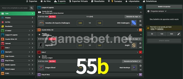 O 55b oferece uma grande seleção de opções de apostas em e-sports com probabilidades competitivas